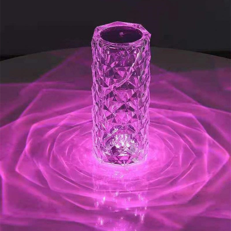 Todo o candeeiro de mesa é feito de material acrílico, com linhas simples e suaves e um design simples. O corte de matriz quadrada reflete luz e sombra como um diamante e mostra luz e sombra fascinantes.