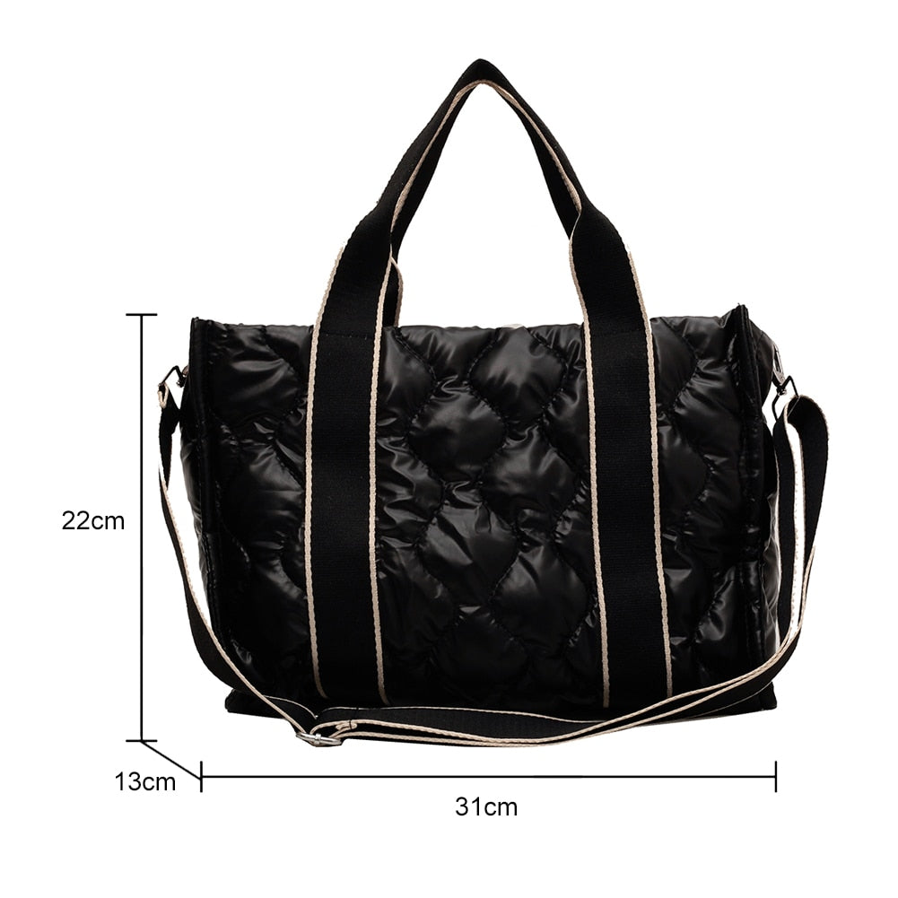 Descrição técnica: Bolsa estilo Tote bag puffer, ou seja tem efeito "acolchoado". Esse modelo que é tendência para 2023 é super leve e possui espaço suficiente para transportar itens essenciais do dia-a-dia. Seu fechamento é em zíper proporciona praticidade e segurança. Possui também uma alça extra regulável e que pode ser removida caso desejar.