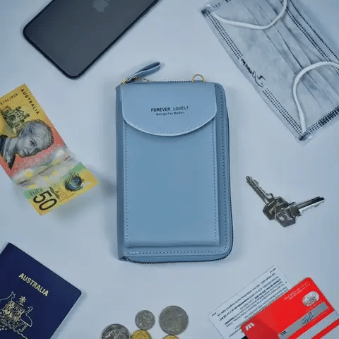 Espaço planejado para seus cartões , dinheiro, óculos, chaves, passaporte e muito mais. Também tem um bolso externo com um prático botão de pressão, para guardar seu celular com segurança .